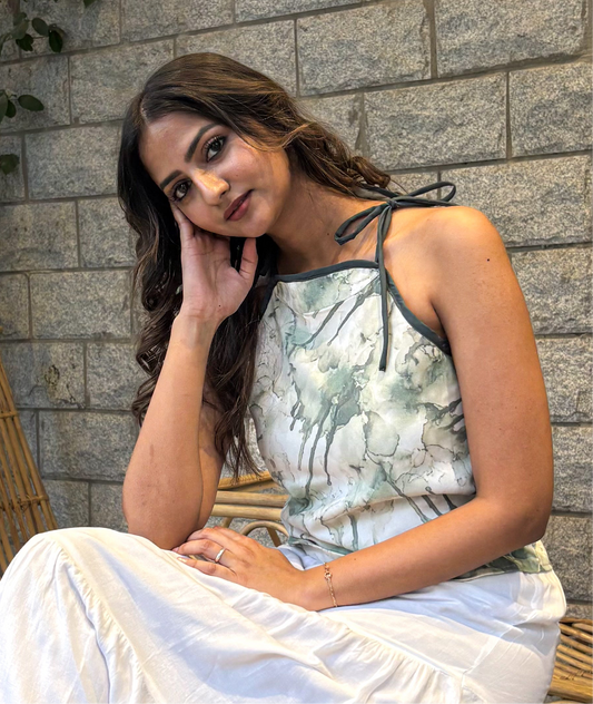 WHITE AND GREEN ABSTRACT PRINT TOP